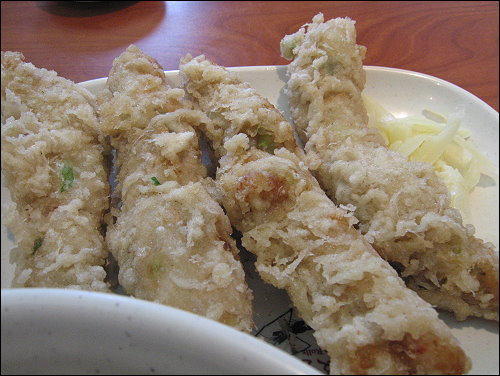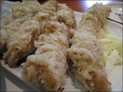 一份有兩條的蝦捲,其實價錢還頗貴的,僅僅兩條便要價45元,外觀看起來不是很完整,不過這也是他的特色,吃起來外酥內軟,可以吃到些許的蝦仁味,是滿好吃的,不過因為滿貴的,所以吃完一份倒也不會想再點一份,就是吃吃味道。