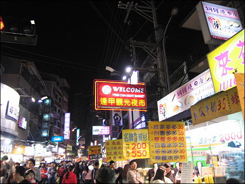 非常有名的逢甲夜市,第一次來台中就來逛,從中港路轉河南路,看到福星路再轉進去,是學長教我最簡單的走法,不過倒是非常的塞,停車會也很難找,都要停到西屯路那邊去才有位子,有次從福星路進去後,過了將近四十分鍾才開過逢甲夜市入口...非常的塞阿,不過滿心期待的來到逢甲夜市,逛過後,倒是有點失望,好像沒有想像中的那麼棒,一中街比較合我胃口,逢甲夜市的小吃,在台北也幾乎都有,或許全台灣的夜市賣的東西都差不多吧,但逢甲內有間黑輪倒是滿好吃的,而逢甲夜市的小吃似乎也比一中街略貴一點,或許是有名的觀光夜市吧,另外值得讚賞的是,夜市內每隔一段路就放置一個垃圾筒,丟垃圾很方便,就我觀察,除了台北縣市以外的夜市,好像都會放置垃圾筒給遊客丟垃圾,台北的夜市都沒有,這是很不方便的一點。