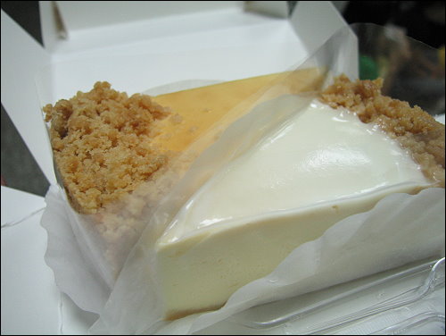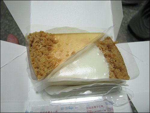 我非常喜歡亞尼克的起士蛋糕,起士味非常濃郁,紐約起士的碎餅乾比較多,較有酥酥的餅乾口感,而優格起士則是在蛋糕上面多了一層酸甜的優格,這層優格是有點半液體半固體的濃稠感,優格起士吃起來除了起士的味道外,還有酸酸甜甜的優格味道,比較不膩口,不過說真的,這兩個蛋糕還真是甜,吃完這兩個蛋糕,喝了一大杯水,而且變得很想吃鹹的東西,人啊,吃玩太甜或太鹹的東西,都會想要趕快換吃別的口味的東西。