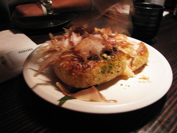是真的頗大的烤飯糰,外表烤的焦香,裡面還包著鮭魚,吃起來味道著實不錯,脆脆的口感,不過這其實也有點小貴就是,但算是來這推薦點的。