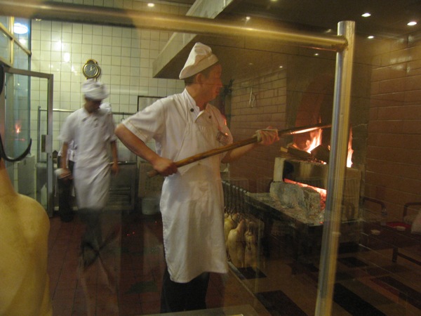 上樓進了門口,就有一片透明玻璃,裡面就是廚房,可以看烤鴨的過程。