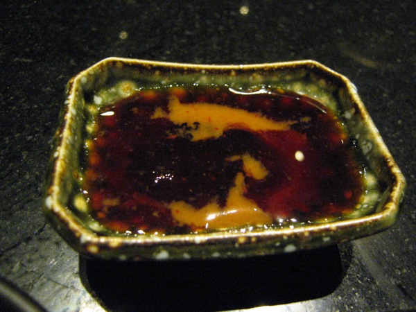赤宴是家相當特別的燒肉店,裝潢非常像lounge bar,店內的座位也很少,除了吧台的七個位子外,就是沙發區的位子,能容納的人數不多,但卻是一家可以深夜獨享燒肉美味的小店,吧台區的座位,是每人自己一個小烤爐,挺不錯的。