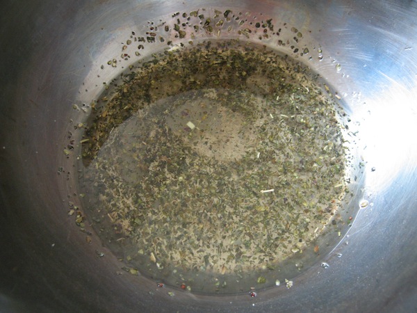 拿一調理盆,將羅勒香料、胡椒粉、海鹽放入,倒入橄欖油,泡個十分鐘入味。