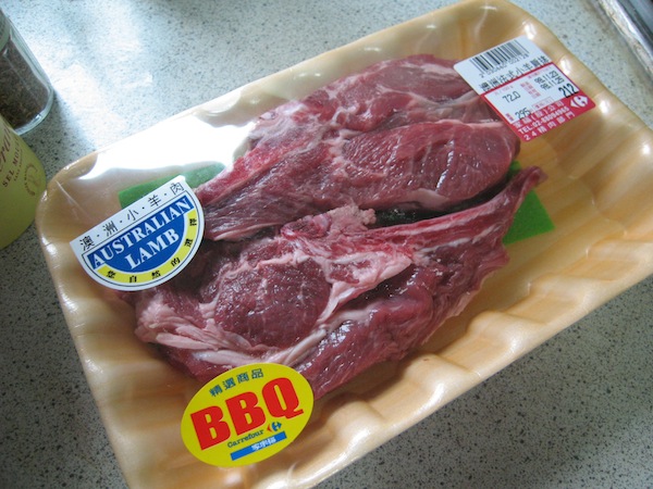 在家樂福、大潤發這類的商場要買到冷藏的新鮮澳洲羊排還真是挺難的,不是每天都會進貨,也算是可遇不可求的肉品,而且就價格上來說,相對於美國牛肉貴上許多,小小兩片羊肩排就要兩百多元,真得是相當不便宜,當然也有冷凍的澳洲羊肩排,但光看那冷凍硬邦邦又結霜的樣子,就沒了食慾,所以逛了好幾天,終於看到有冷藏的羊排可買。