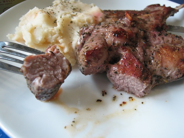 用香料油醃漬的羊小排肉質相當軟嫩,而且完整的鎖住了肉汁,不需醬料,灑上些海鹽即可享受香味迷人,滋味鮮美的羊排,不過比較可惜的是,我用的香料的口味比較不重,所以羊肉還是帶有一些些的騷味,下次改做迷迭香口味的,應該更能鎖住羊騷味。