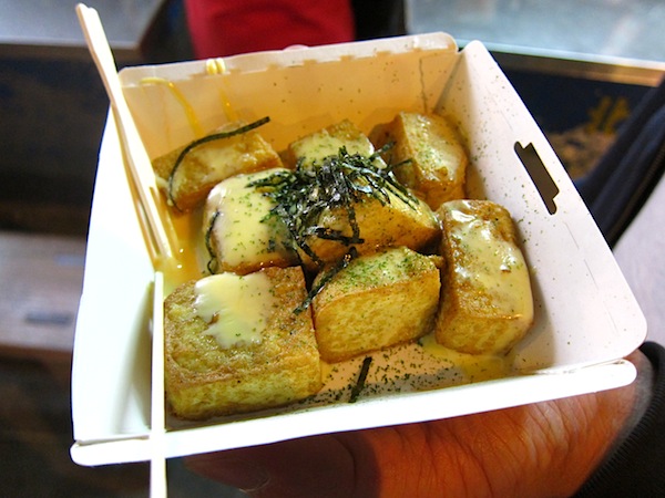 起司炸豆腐用的是雞蛋豆腐,炸完後淋上起司醬與海苔絲,不過起司醬的起司味不夠濃郁,有點可惜,第一次看到這種組合,如果起司醬更濃郁一些,相信一定會很不錯的。