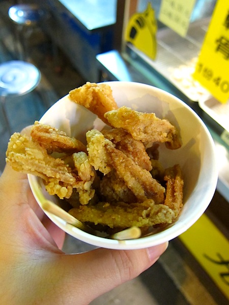 吃完平成十九,意猶未盡地又跑來寧夏夜市覓食,發現這一攤新開的炸雞鋪,有我喜歡吃的雞軟骨,就買了一份來吃。
