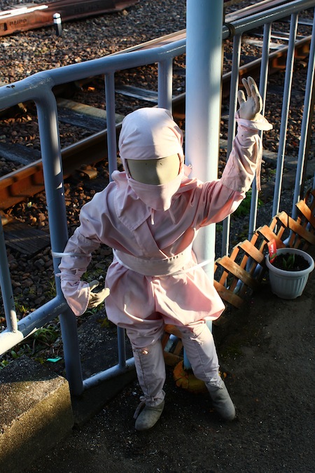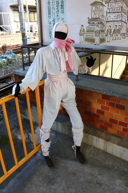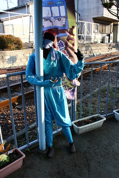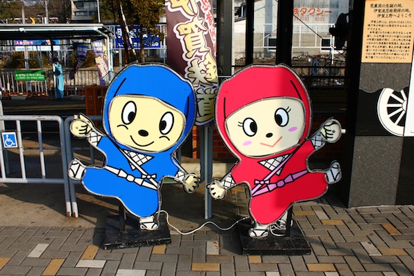 到了上野市站,更有忍者的感覺了,一下列車,月台上就有大小忍者歡迎,出站後也是很多忍者圖案。