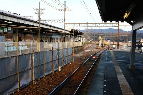 無奈在伊賀神戶晃了一個小時,到奈良的列車終於也到了,本來以為JR應該會比較大台,沒想到就跟伊賀鐵道一樣,也就是兩節車廂,不過這班車不是直達奈良的,到了終點站還得要換另一班車到奈良,那班車就比較大台了。