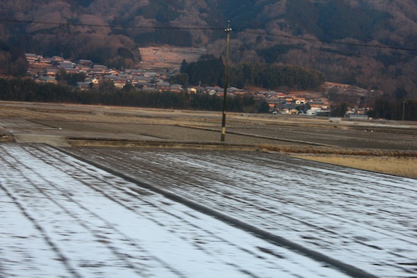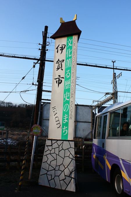 到伊賀神戶大概要一個多小時,一路上就是很鄉村的景觀,而且田裡都還積著雪,大概是昨晚或是前天下的雪還沒融化吧。從天黑坐到日出,今天的天氣相當不錯,晴空萬里,殊不知這只是暴風雪來前的寧靜,中午過後儼然變了天,不過這是後話了。