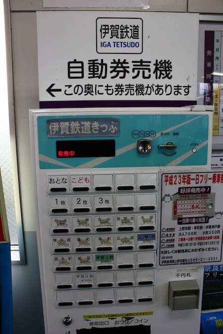 到達伊賀神戶後,接下來要自費掏錢買車票了。伊賀鐵道就跟台灣的平溪線、集集線一樣,就只是一條支線,這條支線上比較大的站也就三個:伊賀神戶、上野市、伊賀上野,其中伊賀神戶與近鐵線交會,伊賀上野則是與JR交會,中間的上野市就是忍者博物館和上野城所在的城市了。