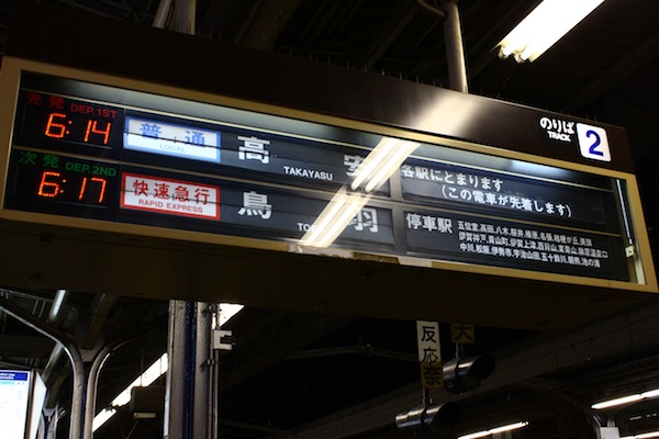 然而,在詢問幾位朋友的意見後,還是決定來伊賀一看,畢竟忍者真的很有趣阿!所以在時間與交通方便為優先考量下,從大阪到伊賀的交通說方便也不盡然,因為直達伊賀鐵道的近鐵班次很少,最適合我行程安排的班次在早上6:17分,從鶴橋前往鳥羽的快速急行,所以這天一大早五點半我就起床check out,先從動物園前搭車到近鐵鶴橋站,到了鶴橋,天都還沒亮呢。