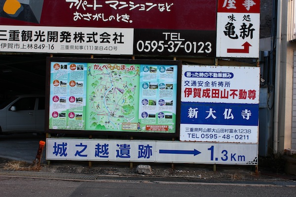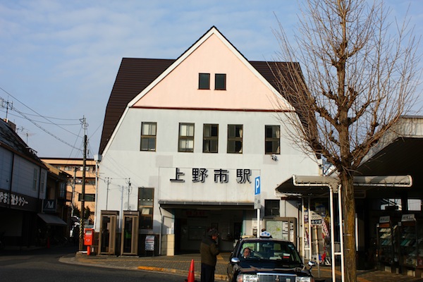 走出伊賀上野站,嗯,跟在Google地圖上看到的並無不同,車站前是個大廣場,左手邊一個小公園,一群老人們在那打搥球,還生火取暖,有夠悠閒。前面就是一望無際的馬路,然後兩旁是民宅、商店。