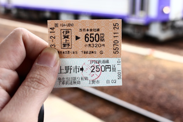回到上野車站,準備前往伊賀上野,搭乘JR到奈良,從上野市到伊賀上野的車價是250円,而從伊賀上野搭乘JR到奈良的車價是650円。
