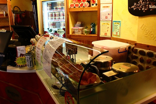以前Bigtom只有賣冰淇淋、飲料和鬆餅等輕食,現在也開始賣蛋糕、餅乾了。天母店的戶外座位還蠻舒服的,往後看就是陽明山。
