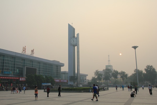 到了洛陽火車站,出站後看看天空,依然是一片迷濛,看著東方已經升起的太陽,也籠罩在一片迷茫中。這就是洛陽的天氣,在洛陽的這幾天,天空都是這樣迷濛,沒看見藍天過。洛陽的空氣品質非常糟糕,眼中所見的都是迷濛狀,讓人很不舒服。
