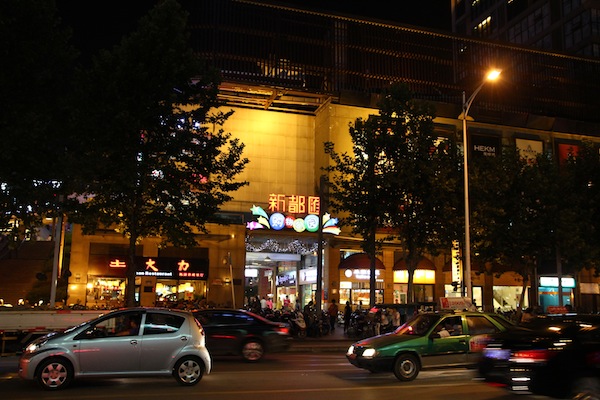 坐公車到老城區西邊的唐宮中路與解放路口,這附近是新開發的商圈,除了家樂福、王府井百貨之外,有個新都匯商場,相當熱鬧。