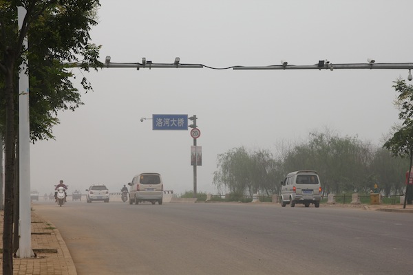 洛陽市內南邊有一條著名的河流,名叫洛河,洛神賦中女神就是出自於這條美麗的洛河。近幾年洛陽市政府整頓了洛河,在河邊建設了洛浦公園,據說相當漂亮,不過我來到洛河大橋,看著河面,一片霧濛濛的,空氣很糟糕,根本什麼也看不清楚。洛陽真是個空氣污染嚴重的城市,空氣中瀰漫著煙塵。