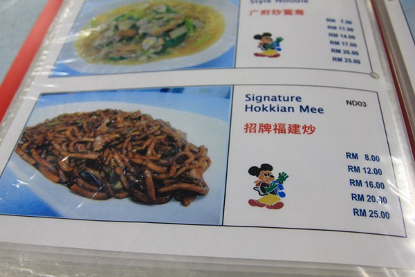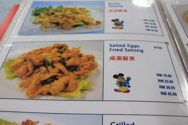 雖然說是小食店,但翻開菜單,其實這裡的菜都不小食阿,都是一些大菜。本來想點個螃蟹吃,但聽到價錢就傻了,店員說螃蟹至少要點兩隻,現在兩隻大概是RM95左右,換算成台幣也差不多九百多塊了,實在是太貴了。