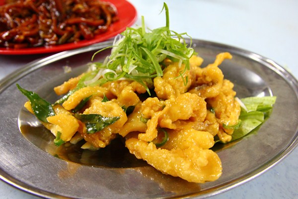一開始我還不知道什麼是蘇東,看了一下才知道原來就是魷魚。菜單上還有個叫拉拉的菜,其實就是蛤蜊。鹹蛋蘇東是將魷魚裹粉炸得酥脆後與鹹蛋醬料一起炒過,有點像上海本幫菜的作法。不過這鹹蛋吃起來竟然是甜大於鹹。跟一般在台灣吃的鹹蛋味道不太一樣。馬來人的口味果然偏甜。不過這道菜相當好吃,酥脆的魷魚加上甜鹹帶點微沙口感的鹹蛋醬,相當地搭配呀!