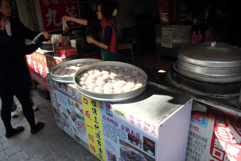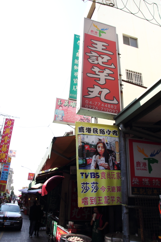 鹿港有許多特色小吃,但在天后宮前看到的大多是蝦猴酥或是各式糕餅,不過也偶有其他食物,像是這家王記芋丸大概是這條街上比較不一樣的小吃。