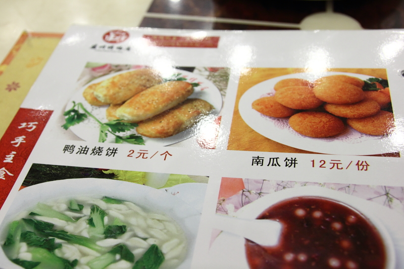 盧州烤鴨店分為五層樓,一樓是散客區,提供一些適合一個人吃的飯麵點心。我則是跑到三樓去,在三樓除了炒菜之外,也能點一樓的點心與飯麵。