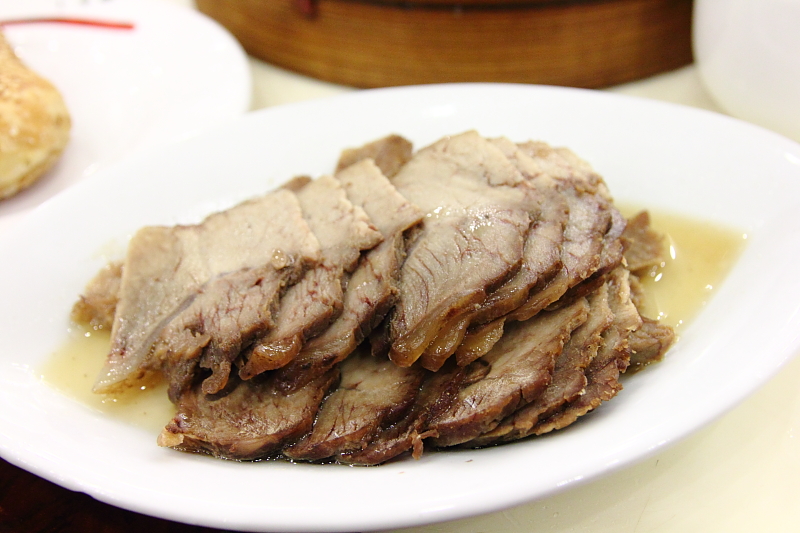 並非醬油滷製的牛肉,應該是白滷作法,味道比較清淡,只有淡淡鹹味,肉質柔軟,挺適合拿來搭配鴨油燒餅一起吃。