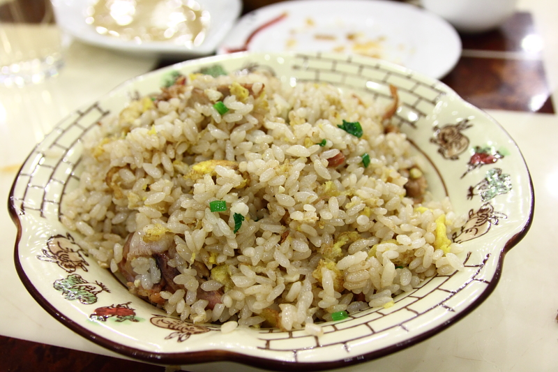 把細碎的烤鴨肉絲用來炒飯,炒飯是十分的家常風味,略微濕黏,帶點烤鴨香氣,不時能吃到烤鴨肉絲。