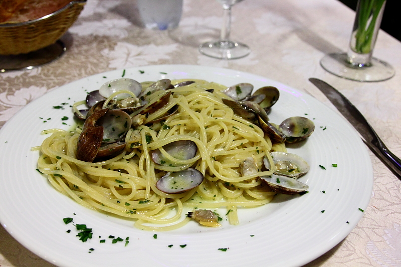到了羅馬是打算把所有類型的義大利麵都吃過一次,不過後來發現每間餐館賣的義大利麵都只有那幾種口味,要吃過一輪也挺容易。我所點的是很經典的白酒蛤蜊麵,在義大利吃蛤蜊麵,會附上個盤子,是用來裝殼的,而我看義大利人的習慣,都是在麵送來後,先將所有的蛤蜊肉挑出,把殼放至小盤子後,才開始吃麵,所以我也有樣學樣。