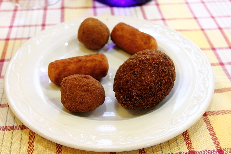 三樣小點都是用細麵包粉裹著油炸至香脆,甚至有點硬的口感。炸橄欖出乎意料的順口,越咬越香,有著橄欖的果香味。馬鈴薯則普通了點,有點像是沒有肉的可樂餅。而炸飯球則是挺不錯的,帶點茄汁味道的飯糰,口感綿軟,搭配著酥脆的麵衣,兩種口感層次分明。