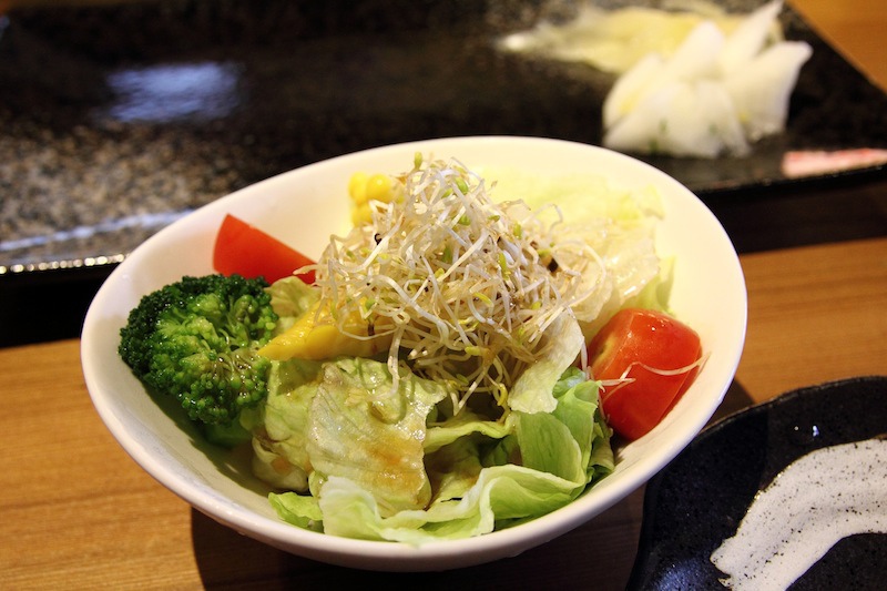 點了綜合壽司丼,也就是有散壽司也有握壽司。首先送上千篇一律的日式生菜沙拉,酸甜的滋味還是很開胃的,只是普通了點,沒有新意。