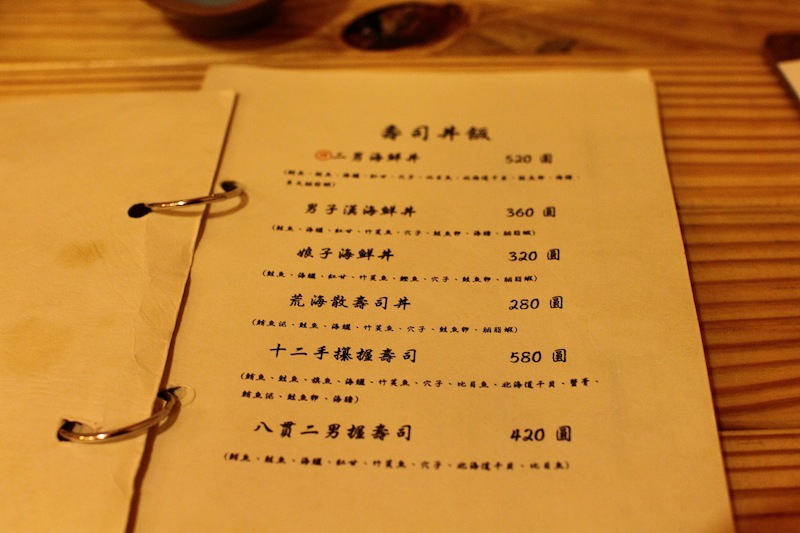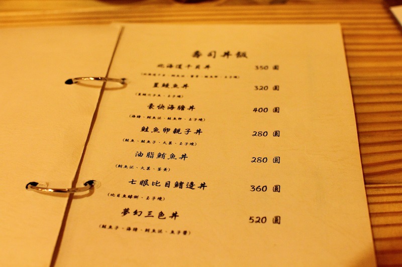 餐點則是以丼飯為主,也有握壽司,其實蠻多樣化的。另外他的丼飯讓人覺得有點瞞著爹三店的影子,不過價格便宜了許多。菜單上的各種丼飯都有註明使用了哪些食材,這點是極好的,讓人一目了然。
