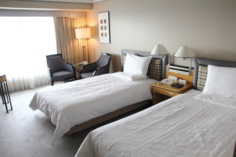 豪華雙人床房有兩張單人床,窗戶採落地窗的設計,因此光照面積十分大,照亮滿室。