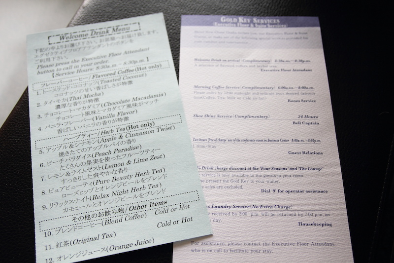 此外新大谷也提供room service的welcome Drink服務,初到旅館的房客,可以點杯飲料來喝,飯店會直接送到房裡,不過有使用時間限制。