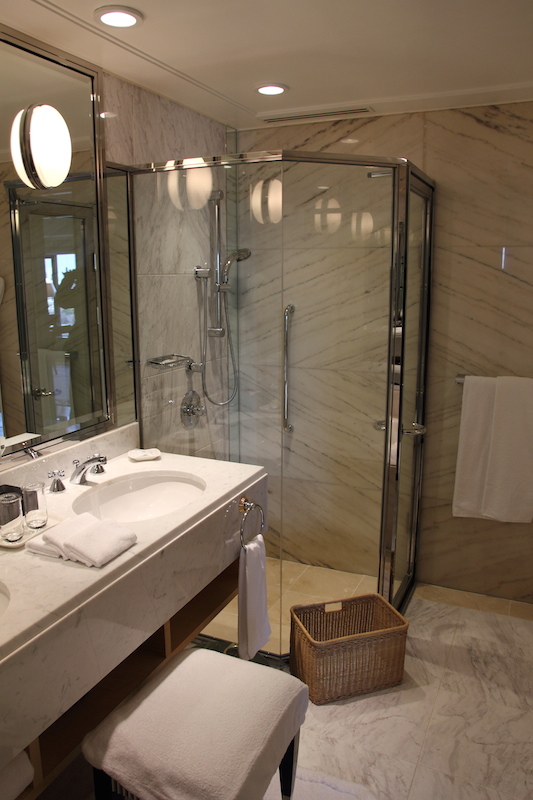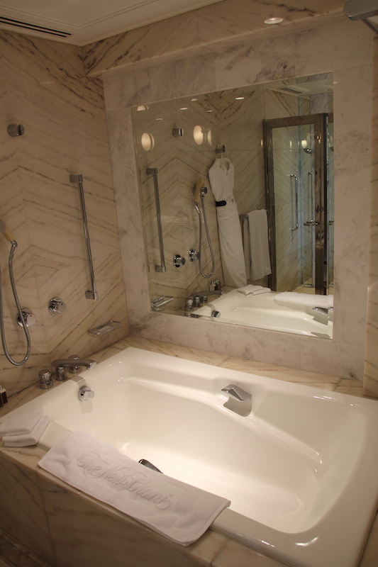 浴室也比較高級,不僅是乾濕分離,其風格也比較時尚一些。其實新大谷算是比較古典的旅館,一般房間的都是比較典雅的風格,價格較高的房間就顯得比較時尚。端看個人所需或喜歡什麼風格的房間來做住宿選擇。