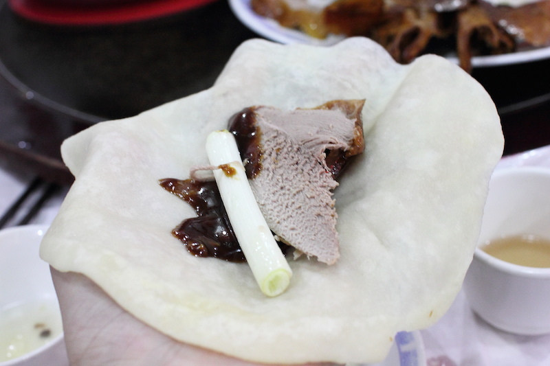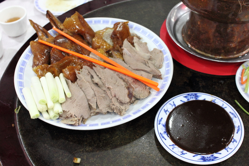 台北的北方菜館幾乎都是這樣紅色柱子的宮廷式裝潢,近幾年來的北方菜似乎也只有烤鴨有在推陳出新,除了烤鴨之外,北方菜系裡的菜餚好像也只有在這類老菜館才容易見到,比較新式的中菜館大多經營川菜、江浙菜。