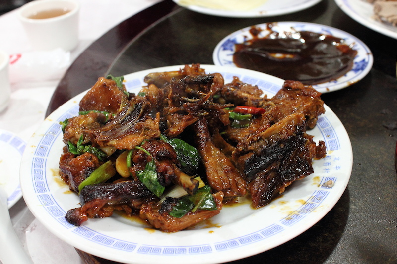二吃的炒鴨骨,味道偏甜,鴨骨的肉所剩不多,我個人是不太愛啃鴨架,所以只小嚐一口。稻香村的烤鴨比較不合我的口味,因此個人不是那麼喜歡,不過包烤鴨的荷葉餅倒是做的不錯,口感彈勁,就是片鴨的技術感覺不是很好,端上的鴨肉也有點冷掉,導致口感味道遜色許多,有時候肉片的太厚也不見得是好事。稻香村還蠻多外國人來用餐,或許是因為鄰近師大吧,對在師大念書的外國人來說,最近吃北京烤鴨的店應該就是這兒了。