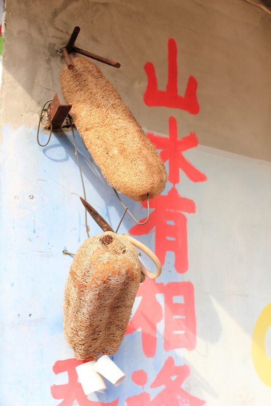 站在彩虹眷村往旁看,彷彿還能見到成功嶺,如果沒記錯,翻過那面圍牆好像是五百障礙場吧?當年成功嶺為了拍瘋台灣大挑戰的國軍五百障礙,發動了全旅的人去整理那塊場地,簡直就是一場悲劇。唉,來到彩虹眷村,還真有點近嶺情怯的感覺,畢竟成功嶺就在旁邊不遠處,當兵的回憶真不是一時半刻可以忘記。