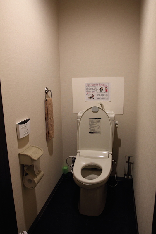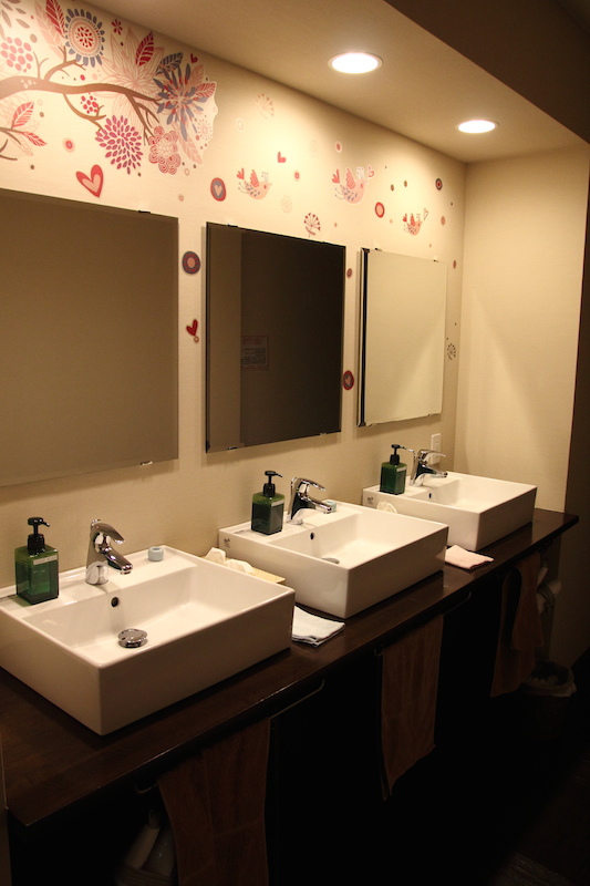 交誼廳旁的長廊走進去是客房區,左邊有洗手台,洗手台有吹風機可以使用。廁所和浴室各有兩間,廁所自然也是使用免治馬桶,浴室則是乾濕分離的淋浴間,空間稍有點小,不過提供沐浴乳和洗髮精。