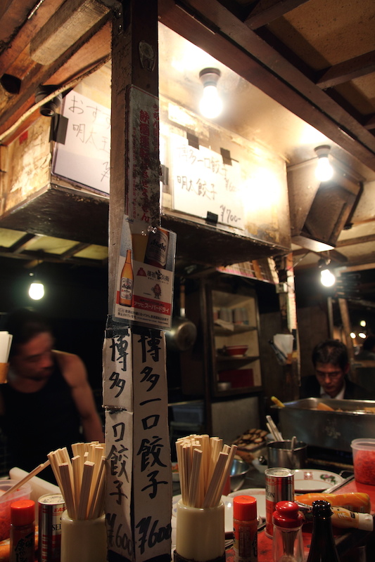 老實說屋台吃的就是一種熱鬧的氣氛,其實位子坐起來不是很舒服,因為空間很小,一堆人擠在小小的攤販,又不像台灣路邊攤會在攤子旁邊擺桌子,所以吃的頗是辛苦。