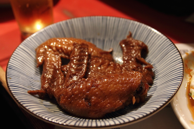 本來我看日文菜單以為是烤雞翅,中文寫著醬雞翅,我不以為意。沒想到送上來的雞翅還真是醬雞翅,就像台灣的滷雞翅,吃起來的確也像,只是口味更鹹一些,應該形容成紅燒雞翅更為恰當。