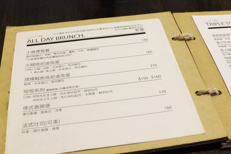 小倉庫的餐點還是早午餐店中常見的料理,沒有什麼特別之處。台灣大多數的早午餐店賣的東西也就差不多如此,鮮少有做出自己獨特特色的店,我說的特色不是在於裝潢與擺盤,而是料理手法以及食材,不要總是一些把烤火腿蛋三明治的食材分開擺放一個大盤子上,看起來好像很豐盛,其實合起來就只是烤火腿蛋三明治。