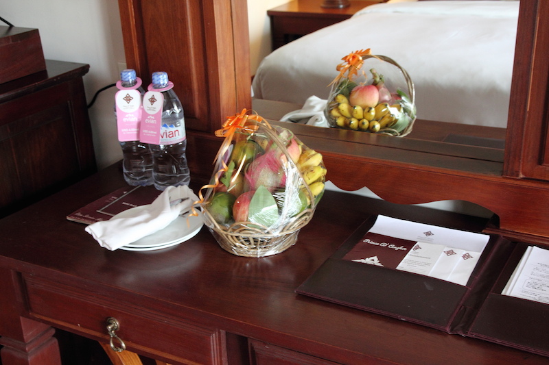 除了礦泉水與茶包咖啡之外,還附贈了一籃水果,沒有寫價錢,想來應該是免費招待房客的吧。