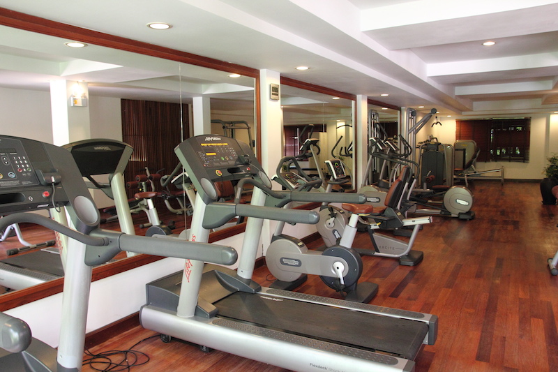 中庭的泳池以及附設的健身房,都是可以免費使用的設施,老外還蠻喜歡游泳的,常可以見到老外在游。