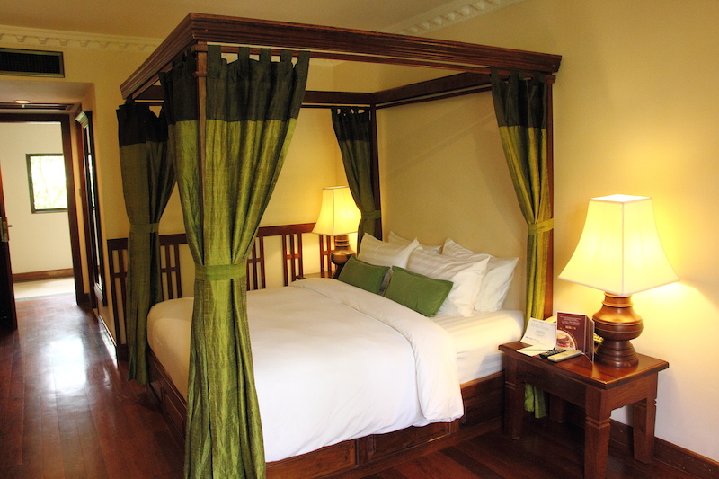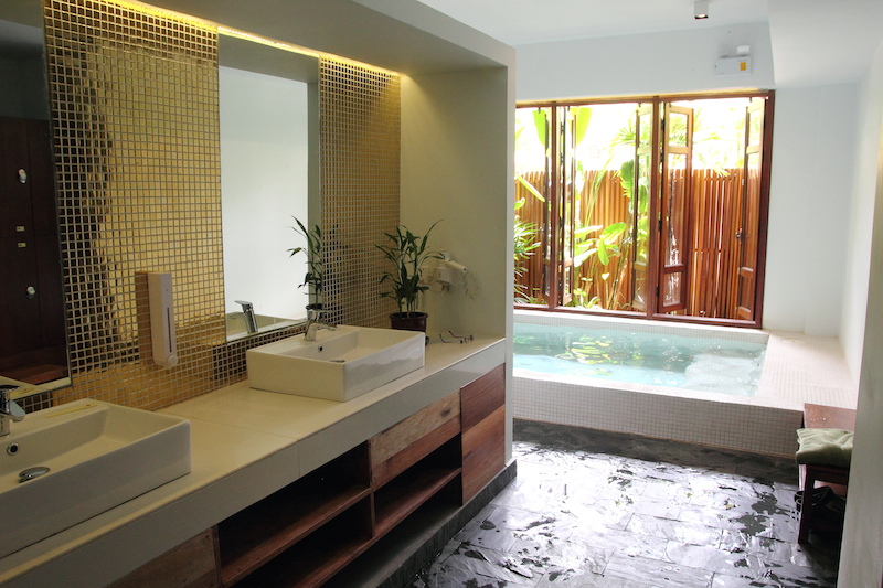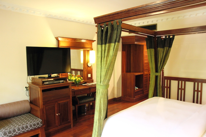 如果是新婚夫婦要度蜜月的話,也可以考慮更高級的雙人套房,同樣設有池景陽台,房間的氣氛感覺更清幽,而且床上還有拉簾,感覺挺浪漫的。