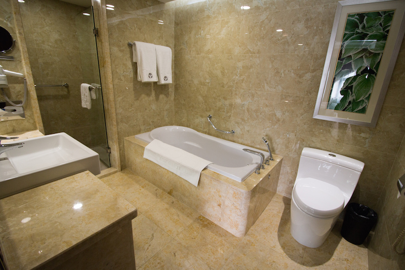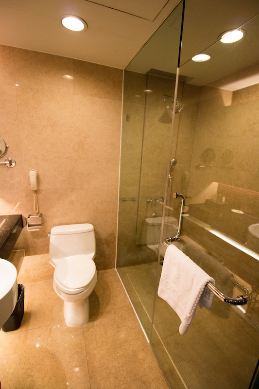 浴室採乾濕分離的設計,淋浴間與廁所的部份隔開,浴缸則是在外頭,熱水出水快,水壓充足,洗澡挺痛快的。