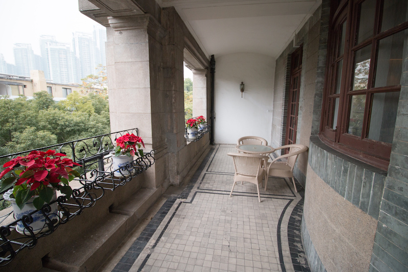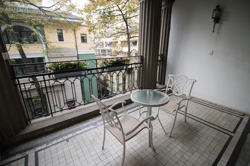 而且這間套房也有陽台,陽台大得誇張。旅館的人員解釋說因為沙面島上的建築都是歷史建築,外觀不能隨意改建,只能改建內部,因此像是陽台的部份,本來有多大就是那麼大,不能做修改。