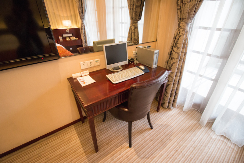 房間裡竟然還附設一台電腦,不過看起來挺有歷史的,因為自己有帶筆電,所以也不曾開機使用。除了有線網路之外,也提供無線網路,密碼就在桌上的牌子。