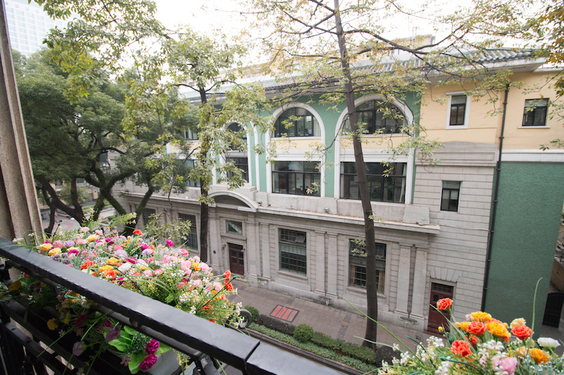 房間附設了一座小陽台,打開窗戶走到陽台,看看外頭的洋樓,真是很有歐風。