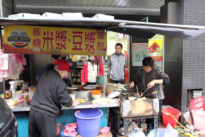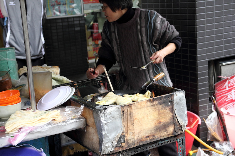 香港的朋友來了台灣,帶她去吃吃台灣的傳統早餐。香港沒有蛋餅這樣的食物,本來想帶她吃吃看南部的傳統蛋餅,可惜北市裡不好找;也不想讓她吃一般早餐店的機器蛋餅皮,於是帶她來延平北路上的手工蛋餅早餐攤子。